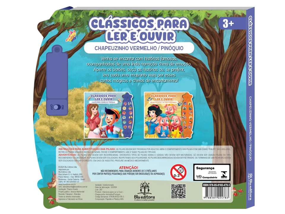 Reviva dois dos contos mais amados da infância com o Livro Infantil Clássicos para Ler e Ouvir: Chapeuzinho Vermelho e Pinóquio – Blu Editora. Com uma linda narração cheia de emoção, esse livro sonoro transforma a leitura em uma experiência mágica e interativa.