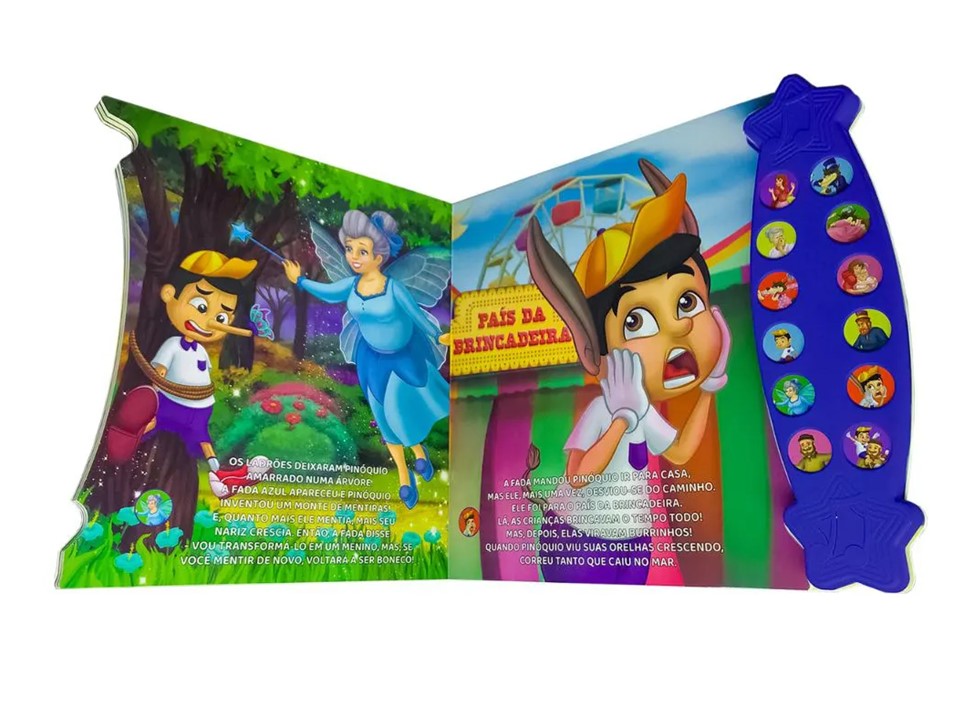 Basta apertar os botões para ouvir as histórias narradas enquanto acompanha o texto com ilustrações encantadoras e coloridas. Ideal para estimular a leitura, a audição, a imaginação e a memorização, este livro é um convite irresistível ao mundo da fantasia.