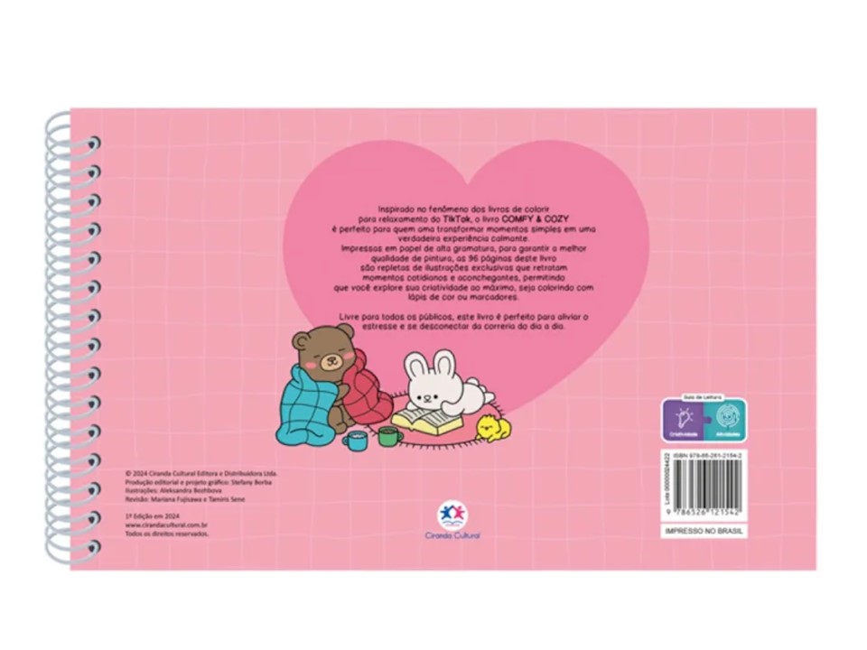 Inspirado no fenômeno dos livros de colorir para relaxamento do TikTok, o livro Comfy & Cozy é perfeito para quem ama transformar momentos simples em uma verdadeira experiência calmante. Impressas em papel de alta gramatura, para garantir a melhor qualidade de pintura, as 96 páginas com 48 ilustrações exclusivas retratam momentos cotidianos e aconchegantes, permitindo que você explore sua criatividade ao máximo, seja colorindo com lápis de cor ou marcadores. Livre para todos os públicos, este livro é perfeito para aliviar o estresse e se desconectar da correria do dia a dia.