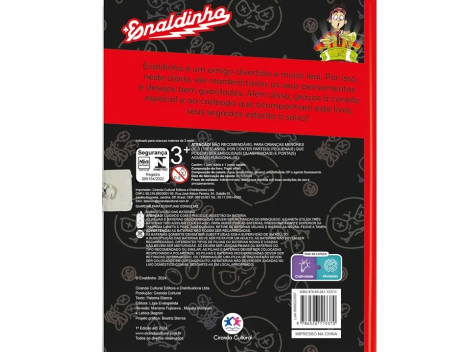 Enaldinho é um amigo divertido e muito leal. Por isso, neste diário, ele manterá todos os seus pensamentos e desejos bem guardados. Além disso, graças à caneta especial e ao cadeado que acompanham este livro, seus segredos estarão a salvo!